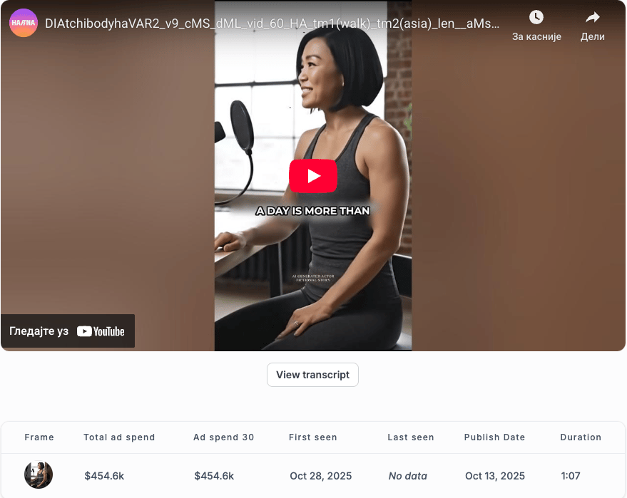 The format? Again, a podcast-style conversation. Two people are chatting about a fitness solution. Simple setup, straightforward language, solid messaging that's clearly resonating. And my hot take is that there’s nothing magical about the podcast style itself, other than clear signaling that it's not “a regular ad", and a step further, the illusion that it's not an ad altogether.