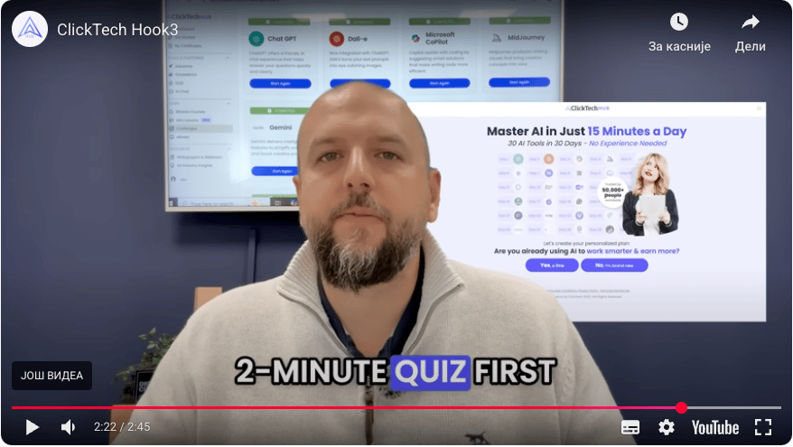 The ad quickly identifies a common problem: information overload. Anyone who's tried to learn about AI online knows this feeling. Too many videos, too many tutorials, and before you know it, you're paralyzed by choice and haven't actually learned anything.