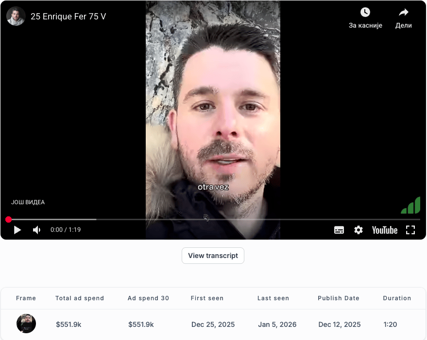 That's what has inspired me to start this year by talking about a Spanish-language ad that's been performing extremely well on YouTube, spending over $500k in less than a month.